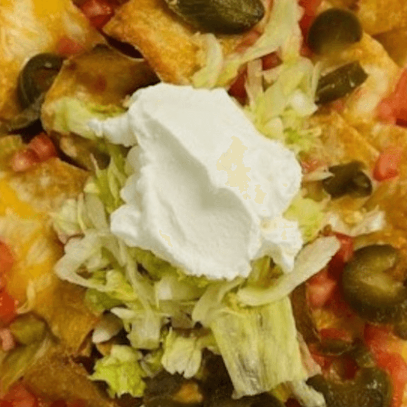 Crispy tortilla chips smothered in melted cheese, zesty jalapeños, and fresh salsa, finished with a dollop of cool sour cream