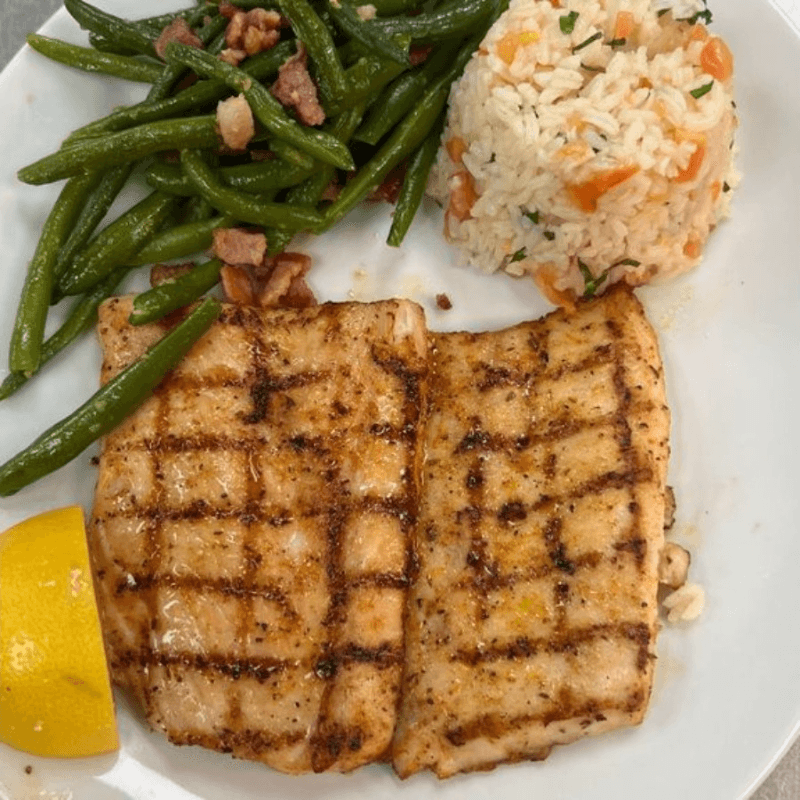 Fresh mahi-mahi, lightly seasoned and grilled to perfection. Served with a wedge of lemon for a bright, zesty finish