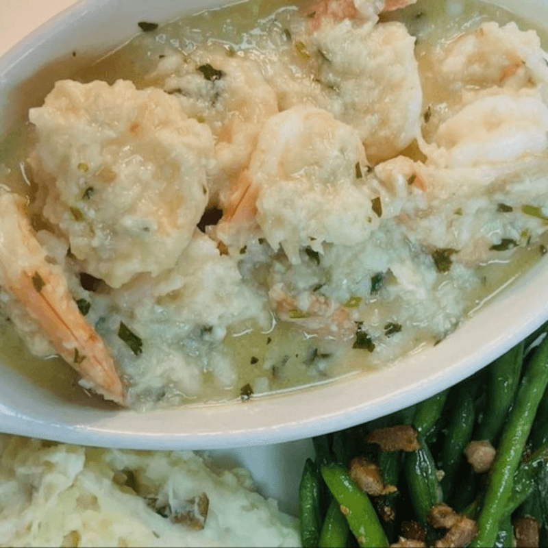 Plump shrimp sautéed in a rich garlic butter sauce with a touch of white wine