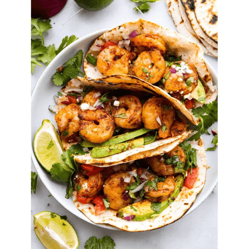 Sautéed shrimp tucked into warm tortillas, topped with fresh pico de gallo, crisp cabbage and a drizzle of garlic mayo