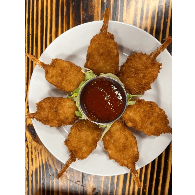 Panko battered butterfly shrimp fried and served with sweet chili sauce