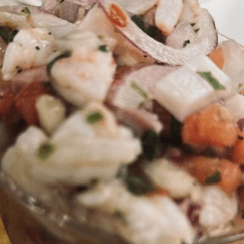 Tender white fish and shrimp marinated in citrus, tossed with onions, tomatoes, cucumbers, and fresh herbs. Served with crispy chips