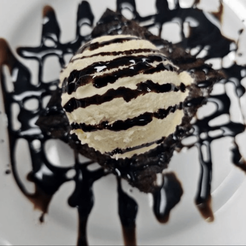 Our triple chocolate brownie creates an intense chocolate experience in this ultra rich, moist and chewy treat topped with vanilla ice cream and a special dark Hershey's chocolate drizzle
