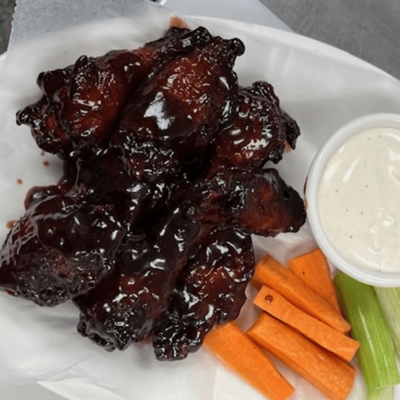 Marinated for two days, then baked low and slow until fall-off-the-bone tender. Flash-fried for that perfect crisp and tossed in grandma’s signature raspberry chipotle sauce