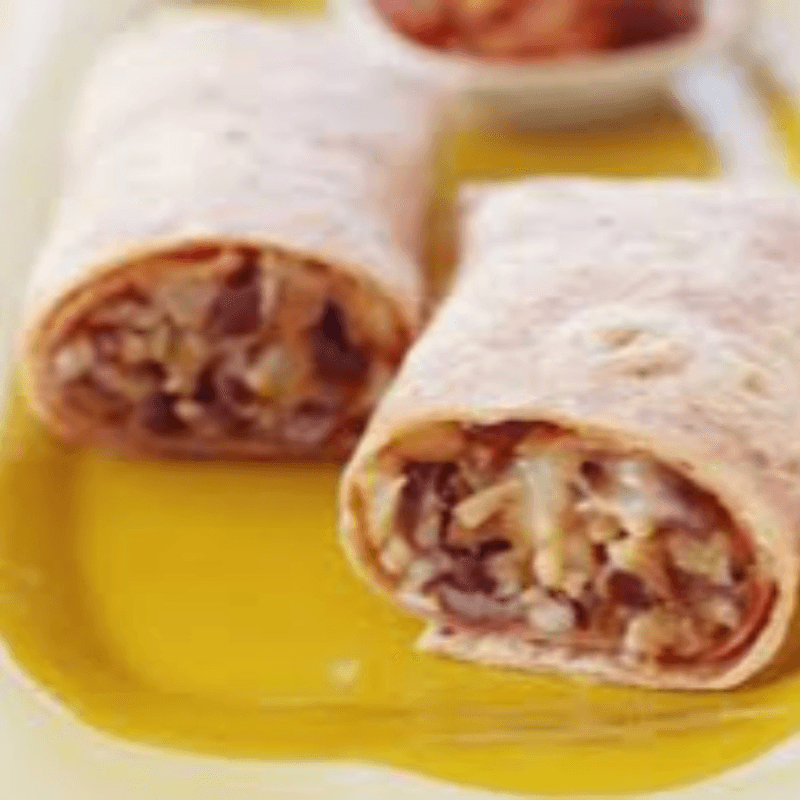 A giant flour tortilla stuffed with your choice of seasoned chicken or ground beef, white rice, black beans and melted cheese. Finished with crisp lettuce, diced tomatoes, and a dollop of sour cream
